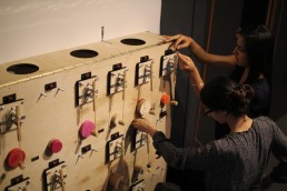 BoomBox is an accumulative musical instrument. Users are invited to put together an electric drumstick made of an electromagnet, a hammer and a drum made of PVC pipe and a lid made of a material of their choice.