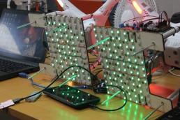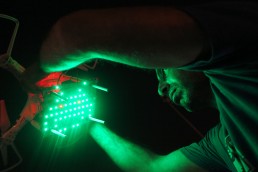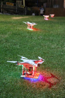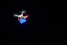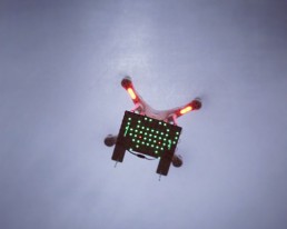 Using Drones equipped with light sensors and LED strips we animated the space drones and arranged them in a game formation using a specially developed autonomous flight software.